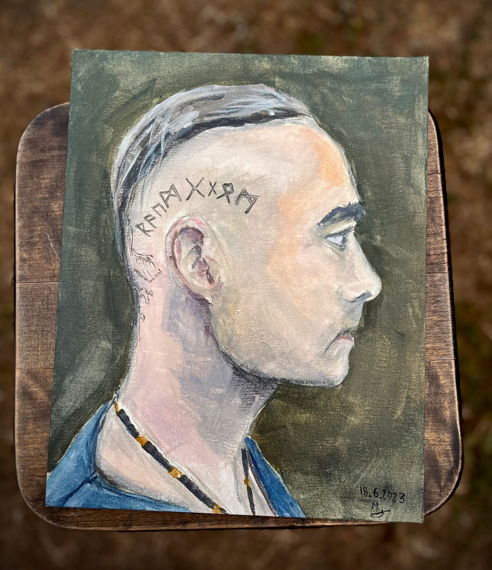 Portrait painted in gouache